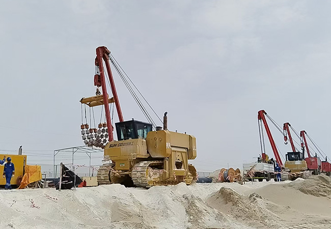 阿聯(lián)酋地區(qū)氣候炎熱,夏季氣溫常高達50攝氏度以上,加之沙塵環(huán)境復雜,對工程設備的性能提出了高要求。中蘇海工履帶吊管機以其強大的動力系統(tǒng)、高效的散熱設計以及堅固的結構,完美適應了這些挑戰(zhàn),確保了施工的高效性和連續(xù)性。設備在高溫環(huán)境下運行穩(wěn)定,操作靈活,極大地提升了施工效率,贏得了現(xiàn)場施工人員的一致好評。